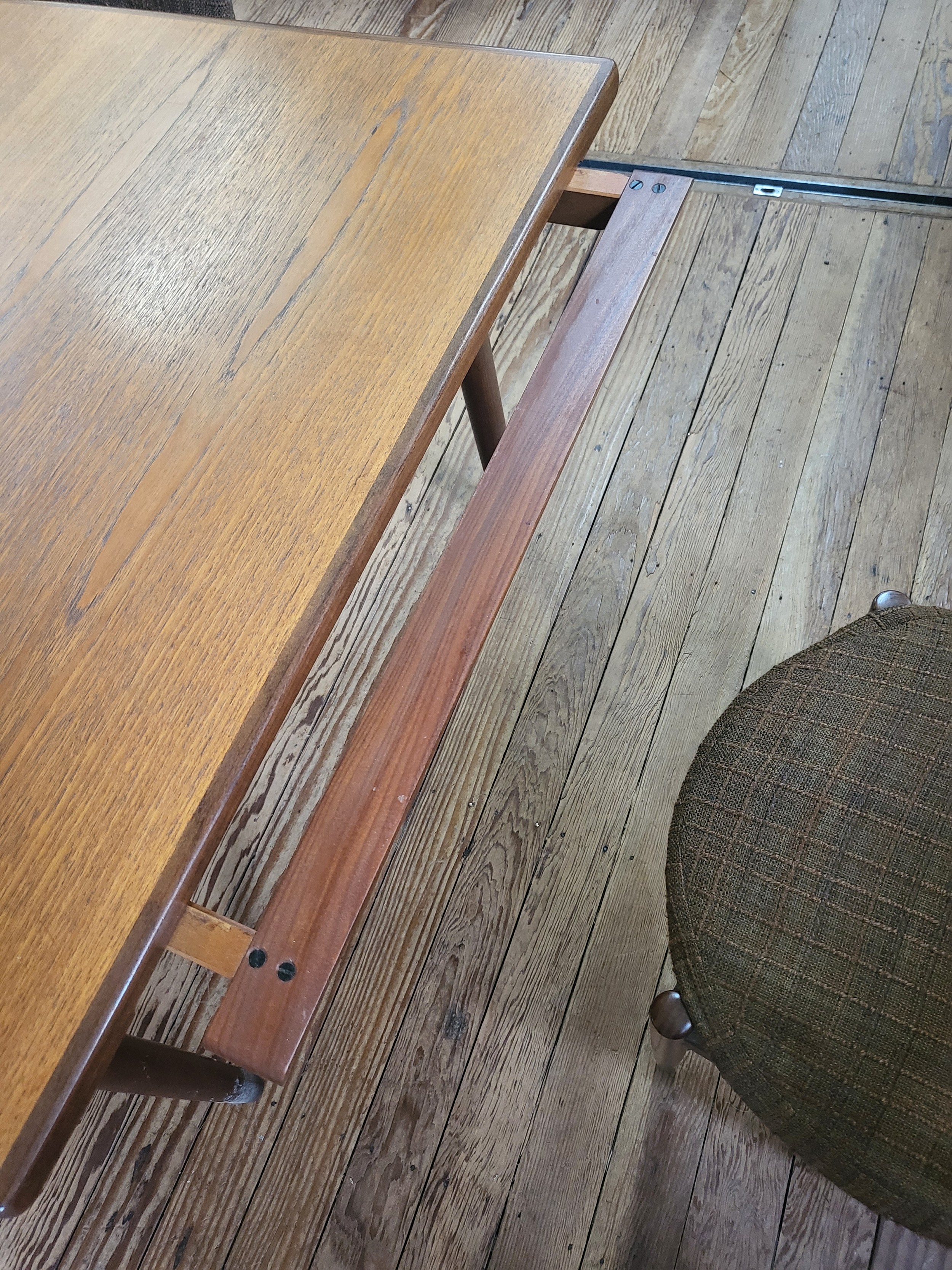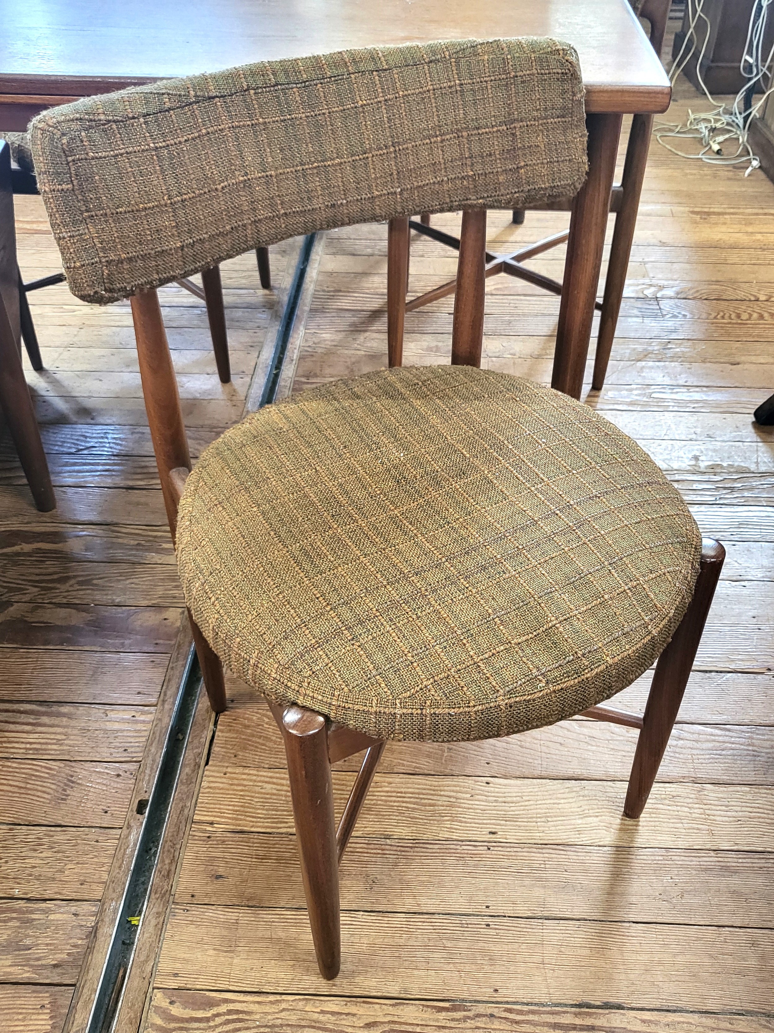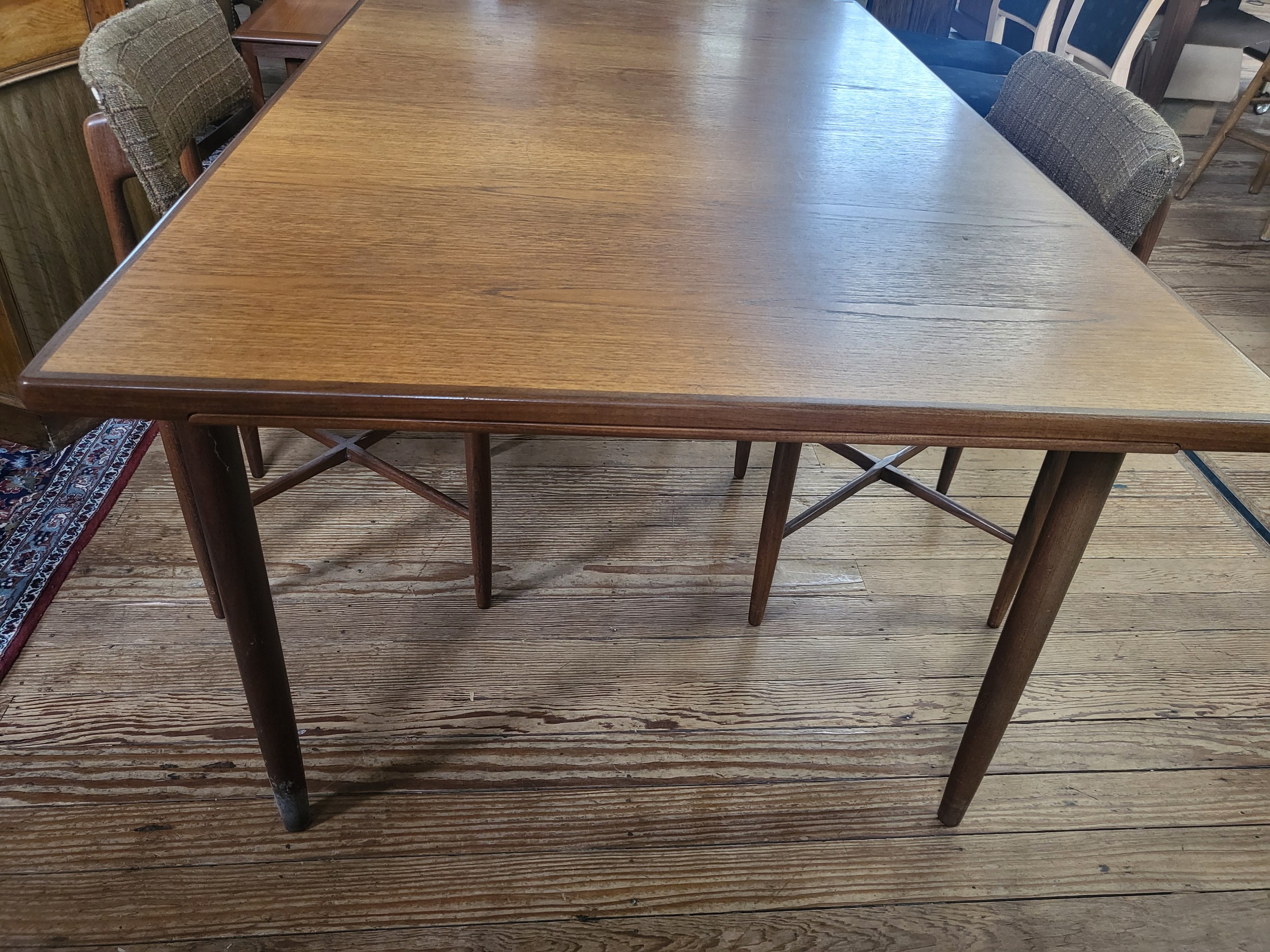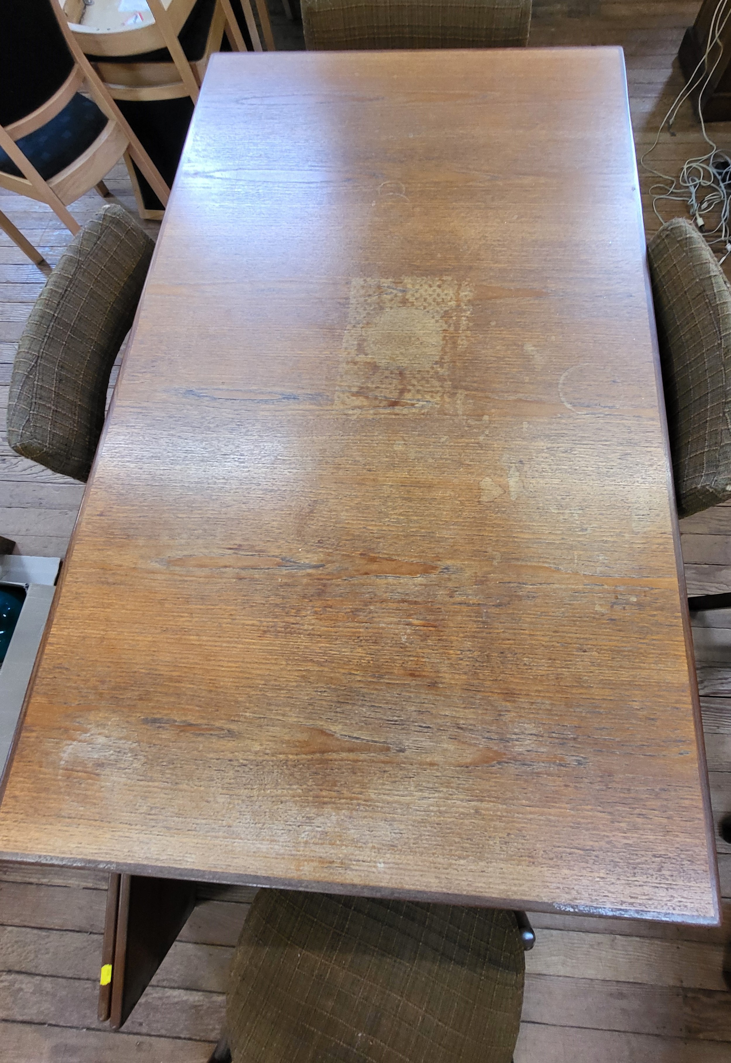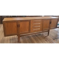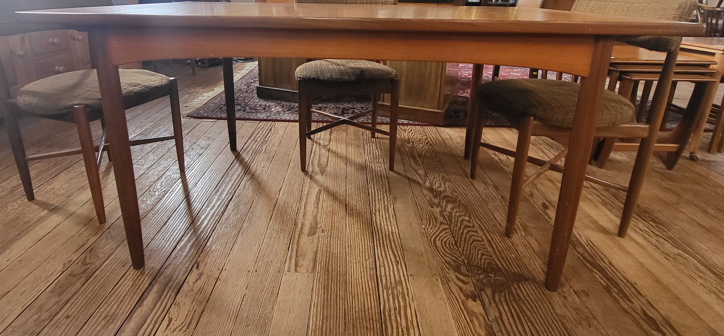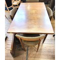 A 1960's G-Plan Fresco dining table with two extendable leaves 72 x 152 x 89cm (two extendable leaves offer an extension of 47cm each), and four chairs.