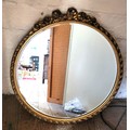 A round mirror in a gilt rope-effect surround and a bow at the top. 60cm.
